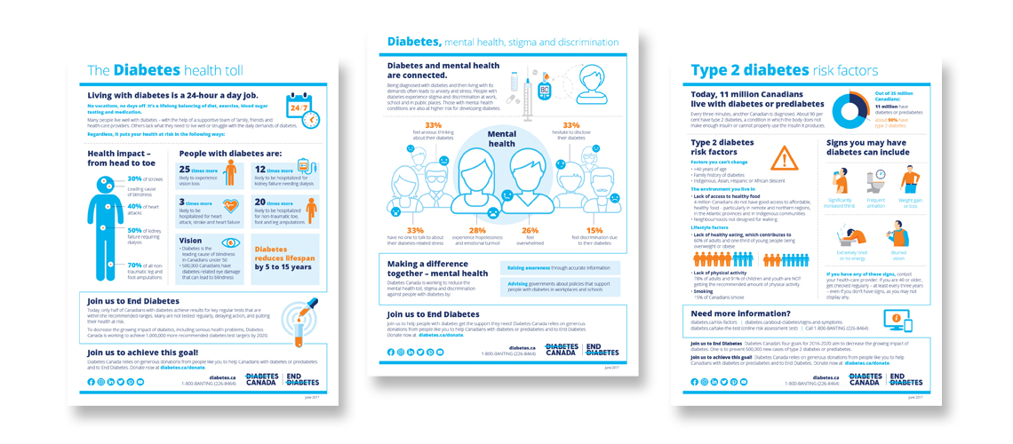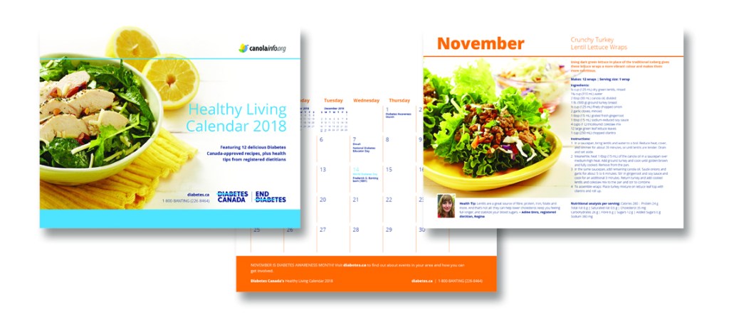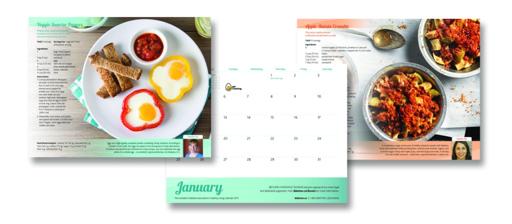 These three infographics are from a series of eleven that we developed to provide information on a range of topics relating to living with diabetes.Multicultural educational resources with information on healthy lifestyle choices. We have collaborated with Diabetes Canada since 2009 to produce informative calendars that provide their audience with tools, recipes and tips on how to lead a healthy lifestyle.