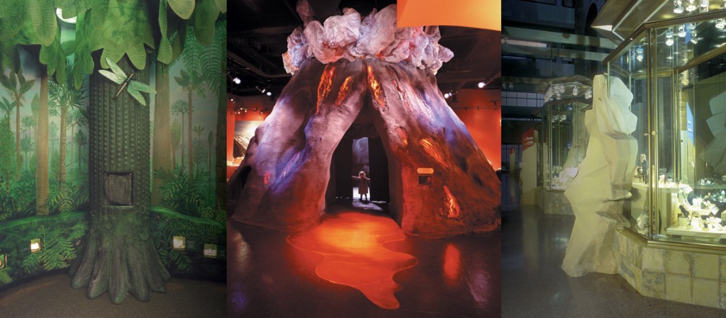Royal Ontario Museum Faux tree bark, volcano theatre, Inco gallery. Client: Feature Factory for the Royal Ontario Museum